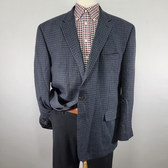 - Oak Hill Mens Sport Coat Blazer Two Button Navy Burgundy Checked 2XL 50R/52R