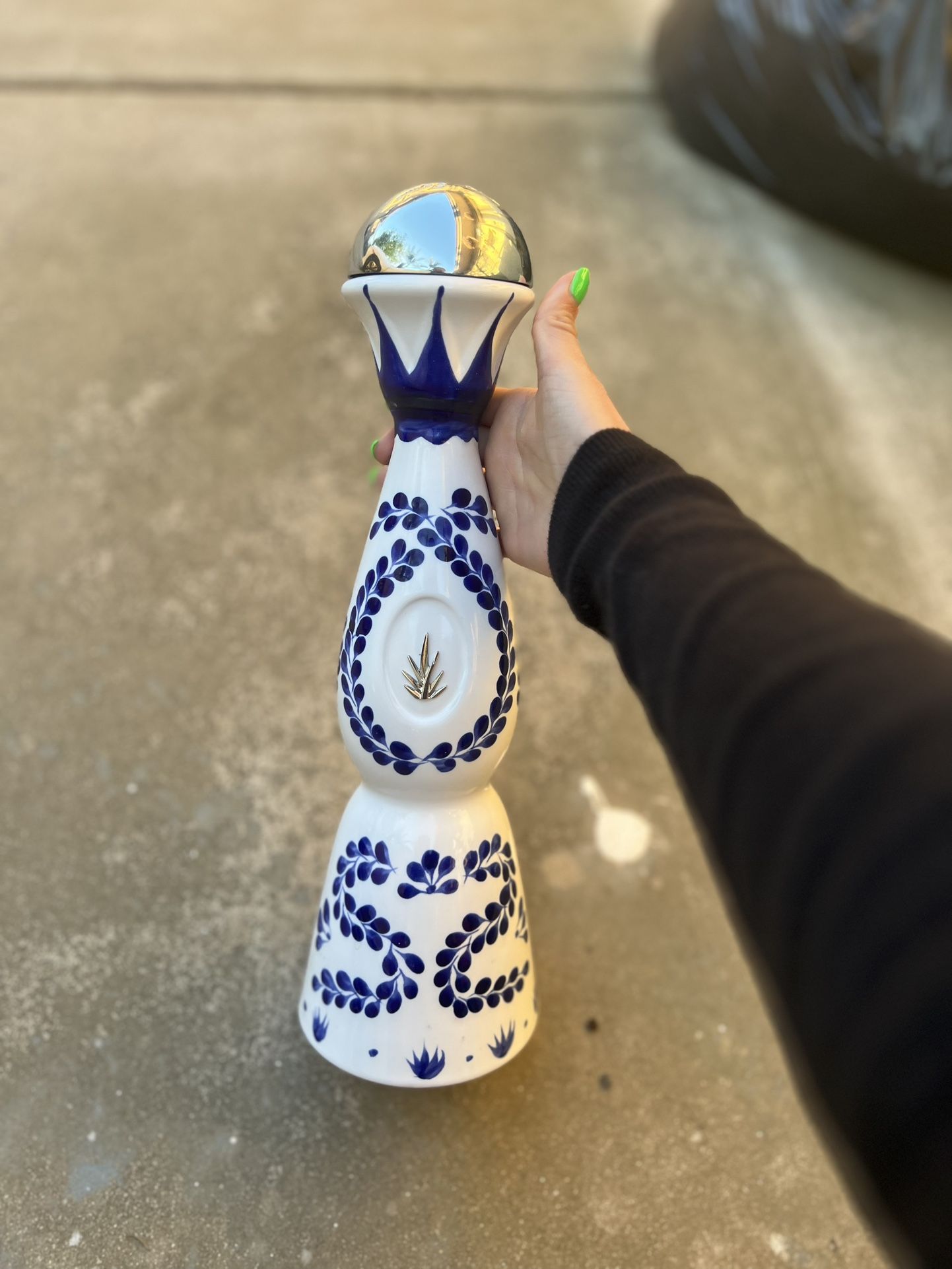 - Chinese Pottery Ling Dyn ? Early Leaf Green Glaze With Black 6.25 Height