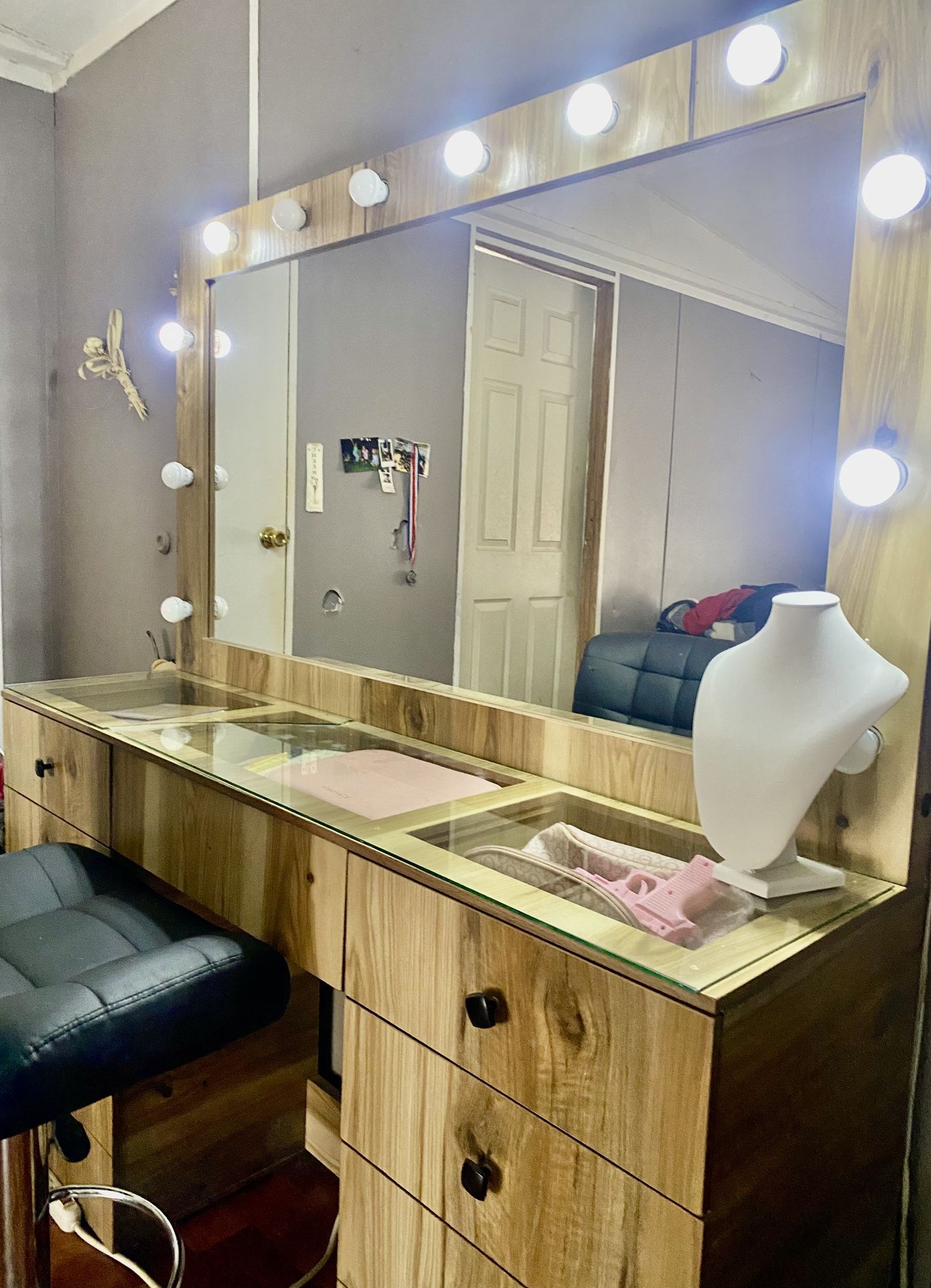 A used coffee table with a glass top, has your normal wear and tear, it has scratches on the glass. Other than that it is pretty sturdy.