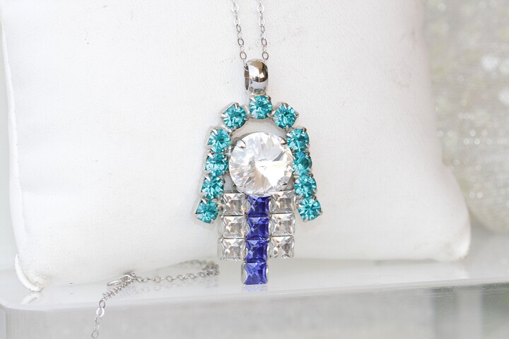 - Nellou Jewellery Blue / Silver Jewel Bead September Birthstone Necklace Sterling Silver - Lapis