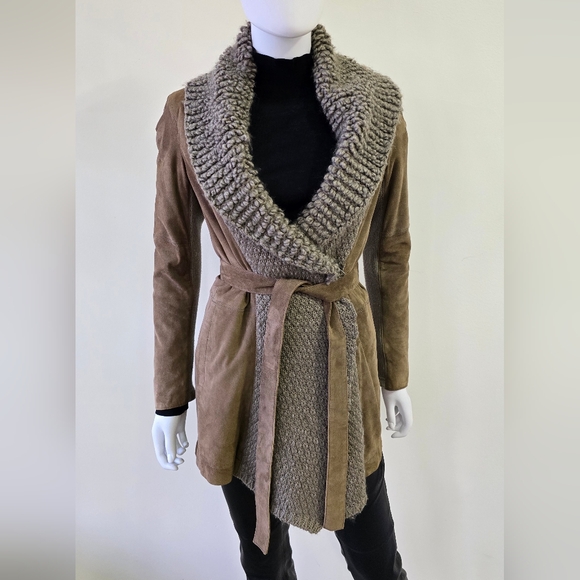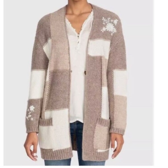 - NWT Vertigo Open Cardigan Duster Sweater Size Small Regal Red Gold Filigree